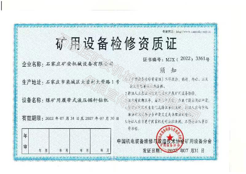 石家莊礦安機(jī)械設(shè)備有限公司成立于2011年3月,公司位于風(fēng)景優(yōu)美、科技發(fā)達(dá)、交通便利的石家莊市欒城區(qū),是一家專注生產(chǎn)煤礦井下支護(hù)機(jī)具(錨桿鉆機(jī))和安全鉆機(jī)(防突,架柱等)及氣動隔膜泵等礦用機(jī)械設(shè)備的********,是國內(nèi)煤礦機(jī)械裝備的生產(chǎn)商和服務(wù)商,根據(jù)用戶需求提供井下適用的鉆機(jī)施工解決方案。公司致力于打造研發(fā)、制造、銷售、服務(wù)為一體的現(xiàn)代化企業(yè),全心全意為煤礦生產(chǎn)保駕護(hù)航。 ? 公司建有裝配車間、機(jī)加車間和調(diào)試車間,擁有嚴(yán)格的質(zhì)量控制體系、先進(jìn)的產(chǎn)品開發(fā)系統(tǒng)、完善的試驗檢測設(shè)施、良好的售后服務(wù)保障。先后與中煤科工集團(tuán)沈陽研究院、西安研究院、太原理工大學(xué)、燕山大學(xué)等知名院校建立了緊密的合作關(guān)系。 ? 公司產(chǎn)品主要銷往山西、陜西、山東、內(nèi)蒙古、黑龍江、云南、貴州等七十多個礦區(qū)和地方煤礦,擁有一支成熟的售后技術(shù)團(tuán)隊,并且和中煤集團(tuán)、華電煤業(yè)集團(tuán)、華潤煤業(yè)集團(tuán)、潞安集團(tuán)、山西焦煤、淮北礦業(yè)等國內(nèi)知名企業(yè)達(dá)成長期合作關(guān)系。 ? 公司始終秉持“讓煤礦生產(chǎn)更安全”的發(fā)展使命,力求誠信與創(chuàng)新,追求卓越與完美,深知“實實在在、心無旁騖做實業(yè)”,這才是本分!石家莊礦安機(jī)械設(shè)備有限公司愿與您攜手共進(jìn),共同發(fā)展!為客戶創(chuàng)造價值,提供優(yōu)質(zhì)的產(chǎn)品和*佳的服務(wù)是我們永無止境的理念!